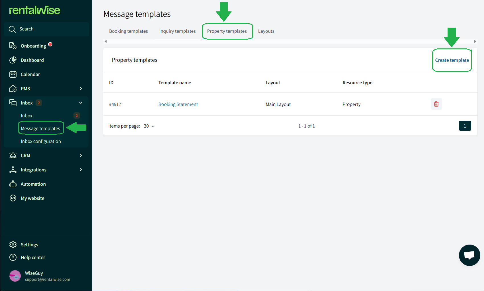 Go to Inbox → Message Templates → Property Templates.
