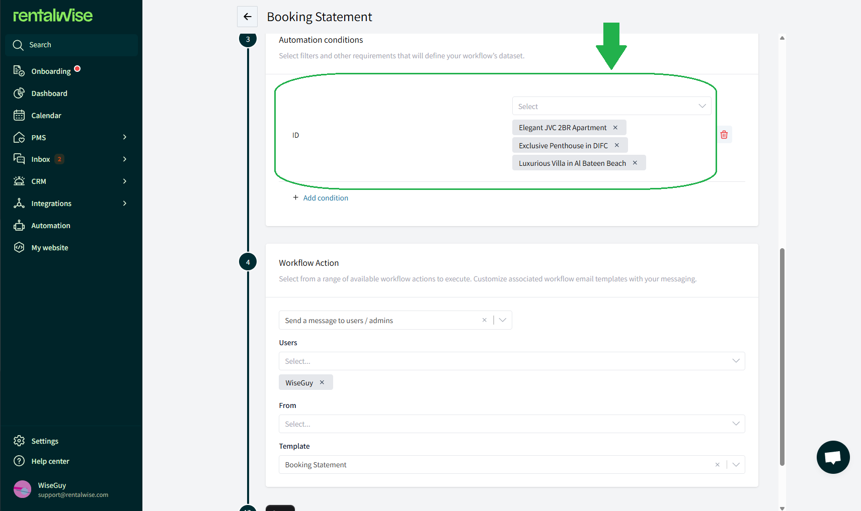 Click Add Condition and select the Property IDs for which you want to generate and send statements.