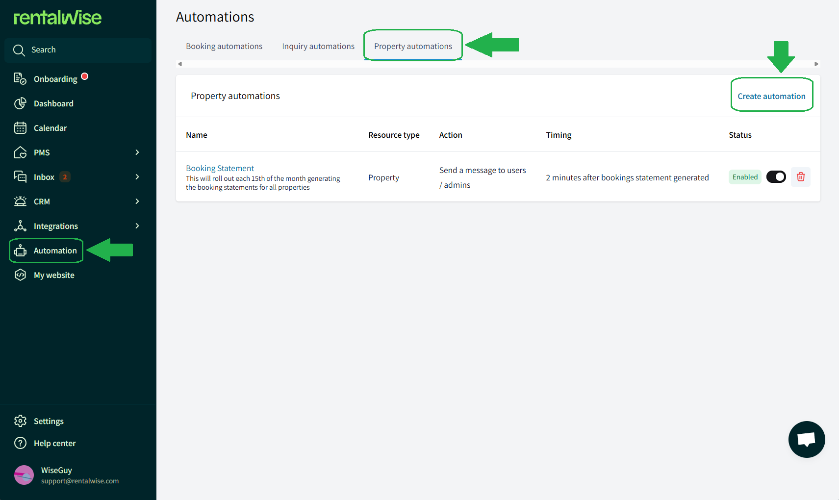 Go to Automations → Property Automations → Create Automation.