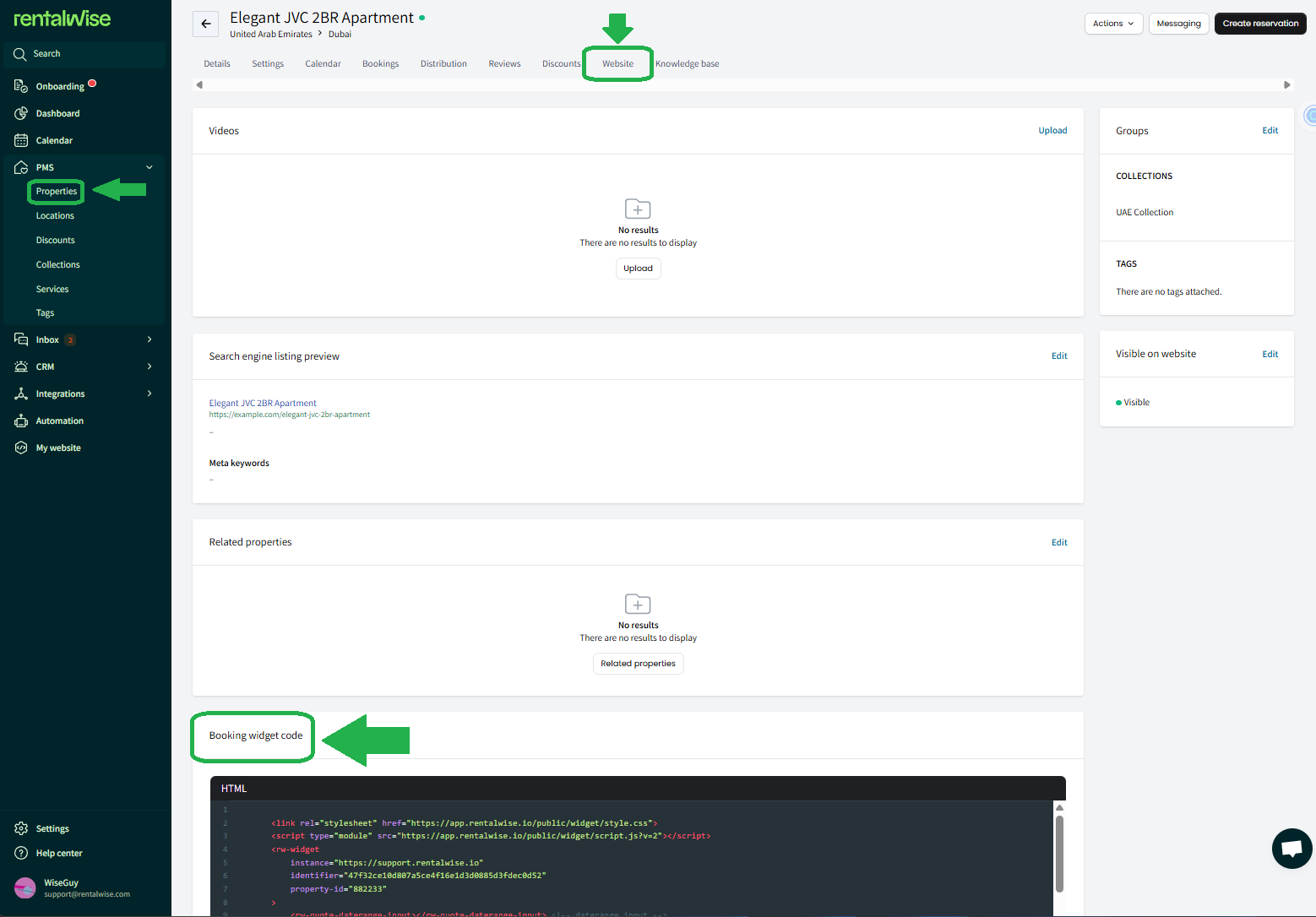 Important NotesThe widget code operates at the property level, meaning each property has a unique widget code.